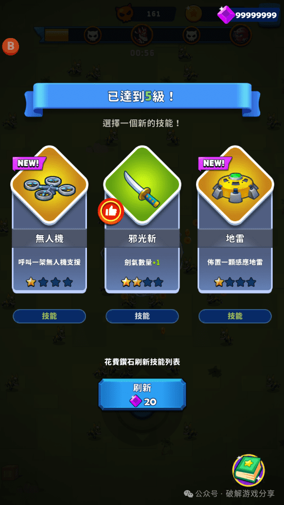 【破解说明】解锁左上角作弊菜单,伤害加倍+无限钻石+无限金币+上帝模式!非常解压休闲,适合挂机摸鱼玩!所有英雄可以买!